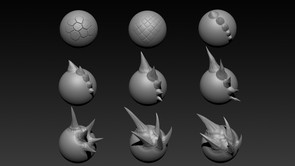 🐲38 hand made scales and spikes brushes for Zbrush designed by Dragolisco for dragons and other reptilian humanoid and not humanoid monsters. Mostly focused on big scales and organic plates rather than textured reptile skins. It includes a free version with 4 brushes so you can try them on your creations.